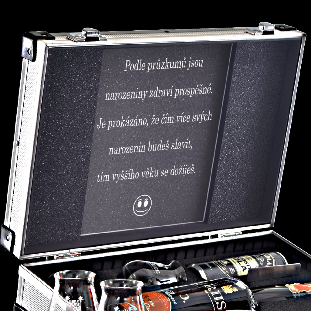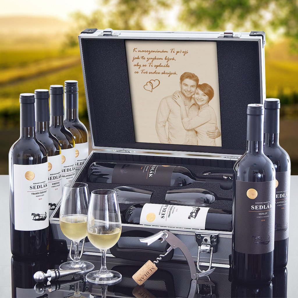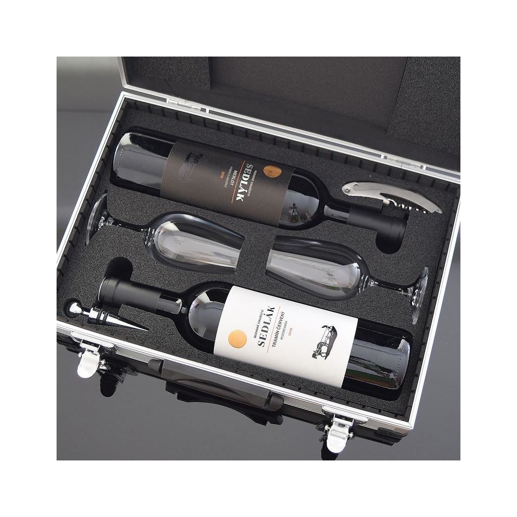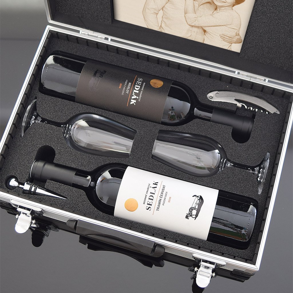 Dárek v podobě elegantního hliníkového kufru na víno je perfektním dárkem pro milovníky vína, kteří si chtějí užít luxus. Ideální dárek pro každou příležitost, jako jsou narozeniny, svatba nebo svátek, tento dárek jistě potěší každého, kdo si chce dopřát kvalitní sklenici na víno v luxusním stylu.